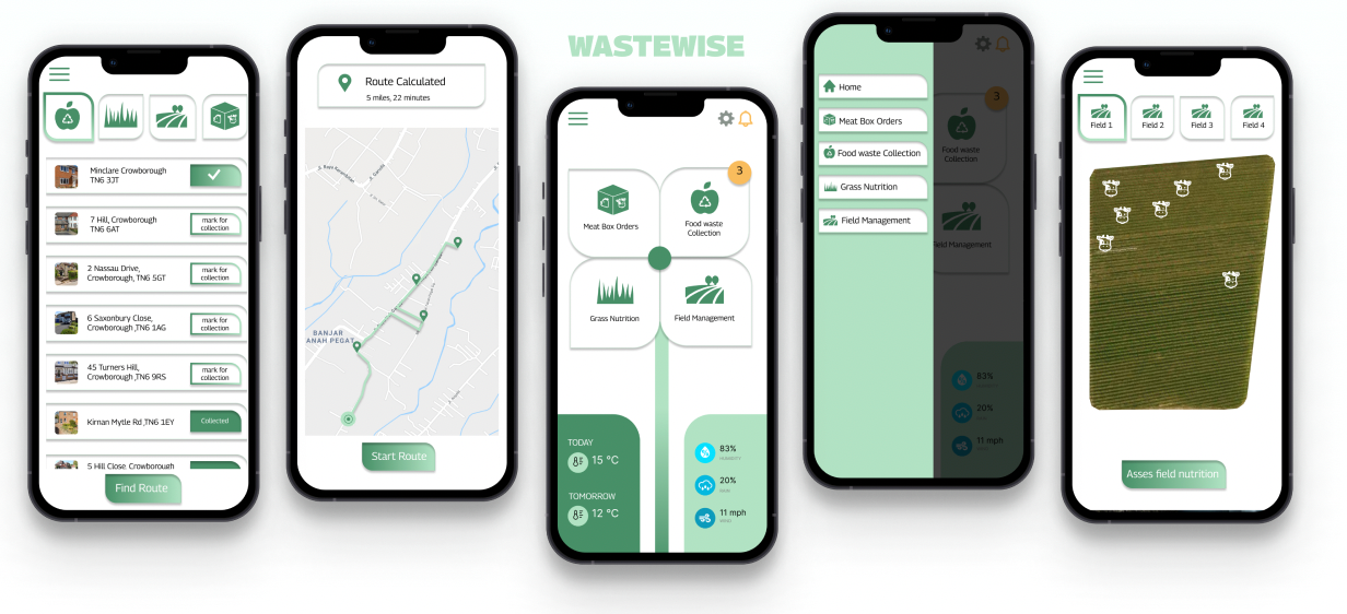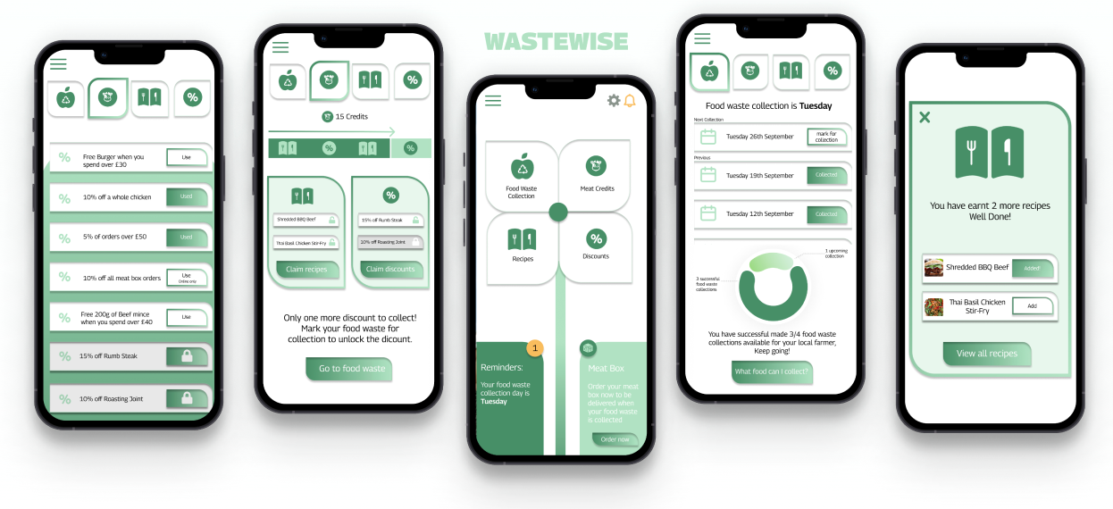An application for households to buy sustainable meat, and reduce landfill food waste by giving it to local farmers to compost in return for 'credits' and recipes.